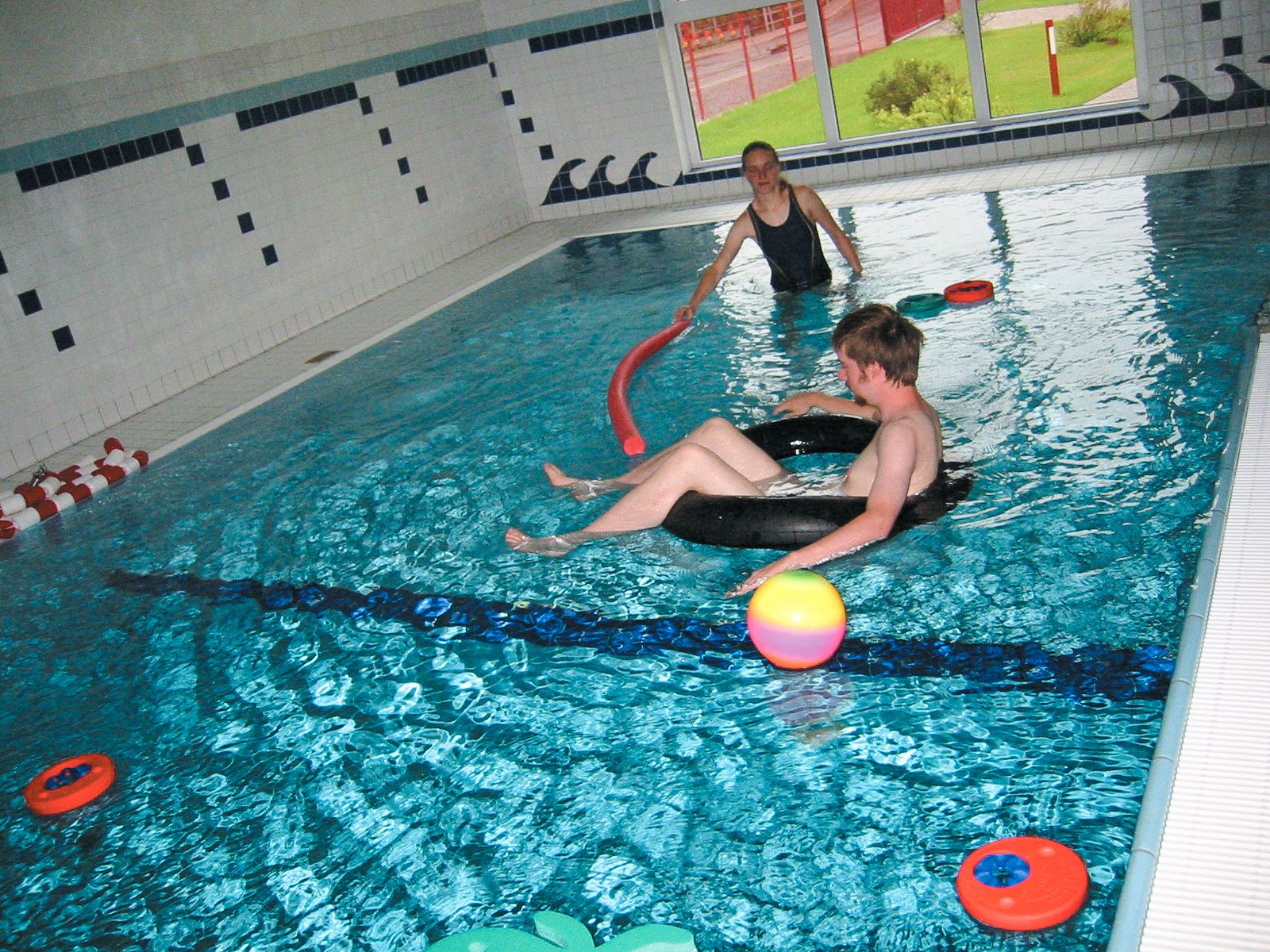 - ein Schwimmbad mit barrierefreien Umkleidekabinen im Erdgeschoss