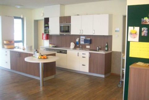 In den Gemeinschaftsräumen gibt es jeweils eine Bewohnerküche und auch die Möglichkeit sich zum Lesen, Basteln und "Klönen" zu treffen.